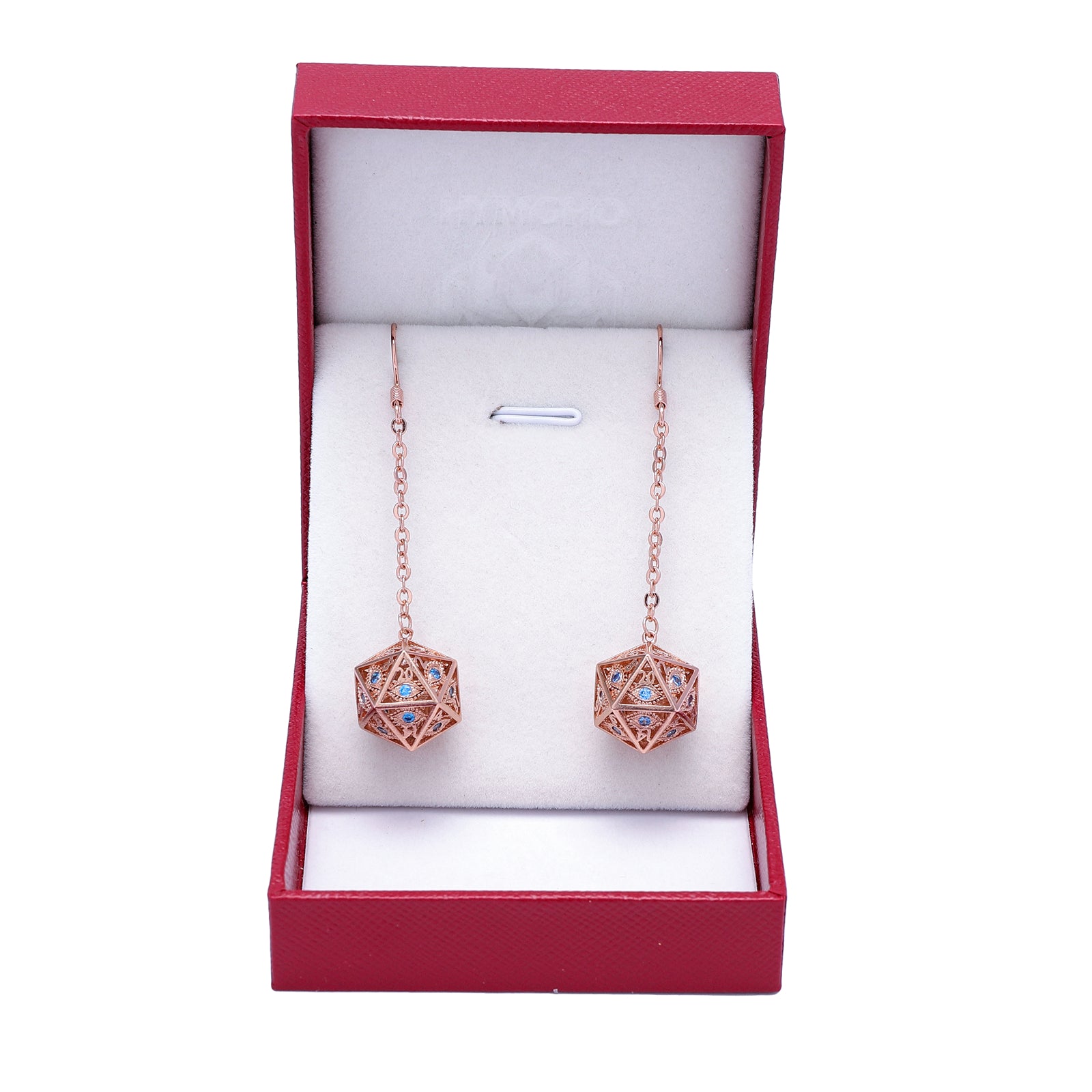 ドラゴンアイ D20 イヤリング - ゴールド、レッドジェム付き