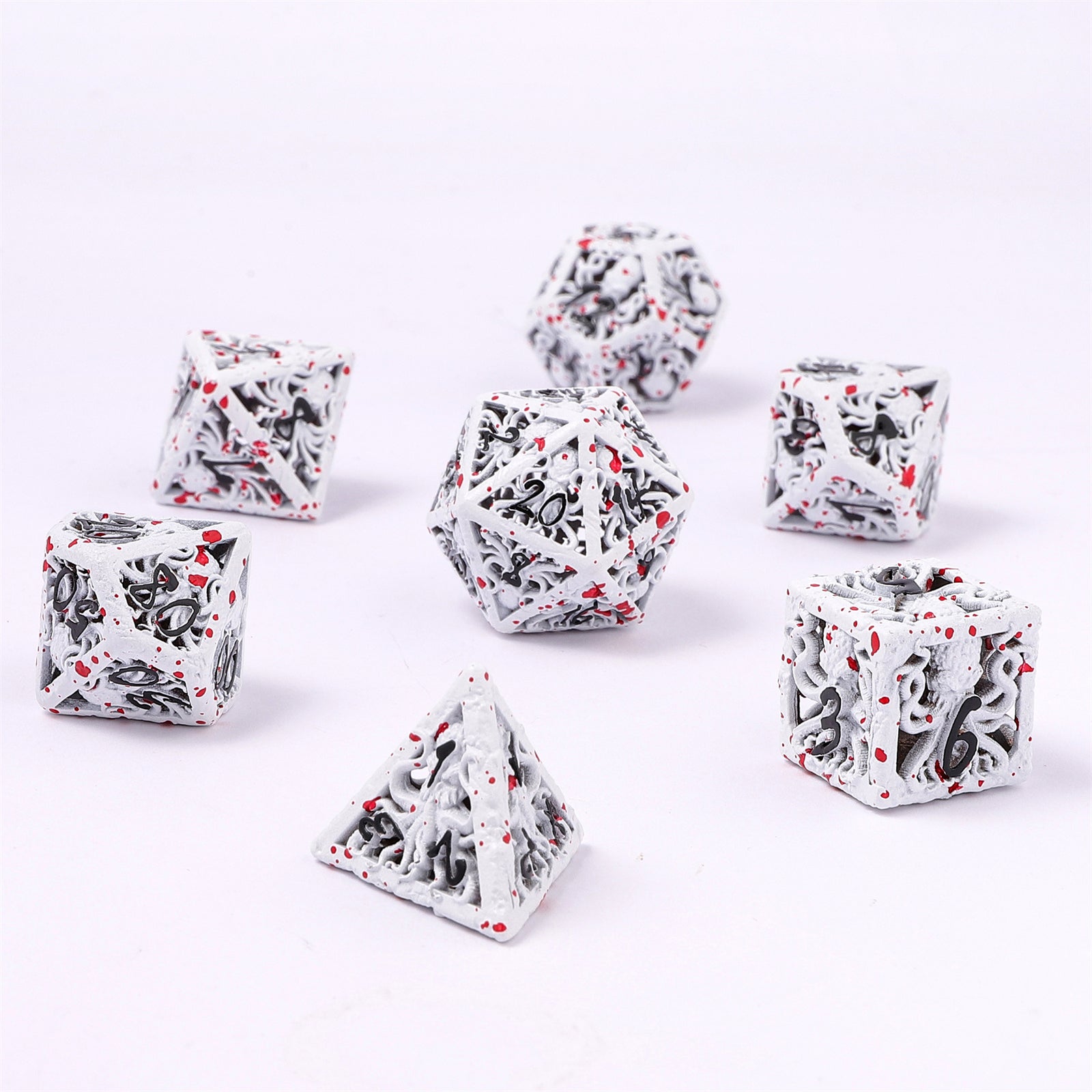 Lllithids Mind Cage Hollow Metal Dice Set - Blood Spatter