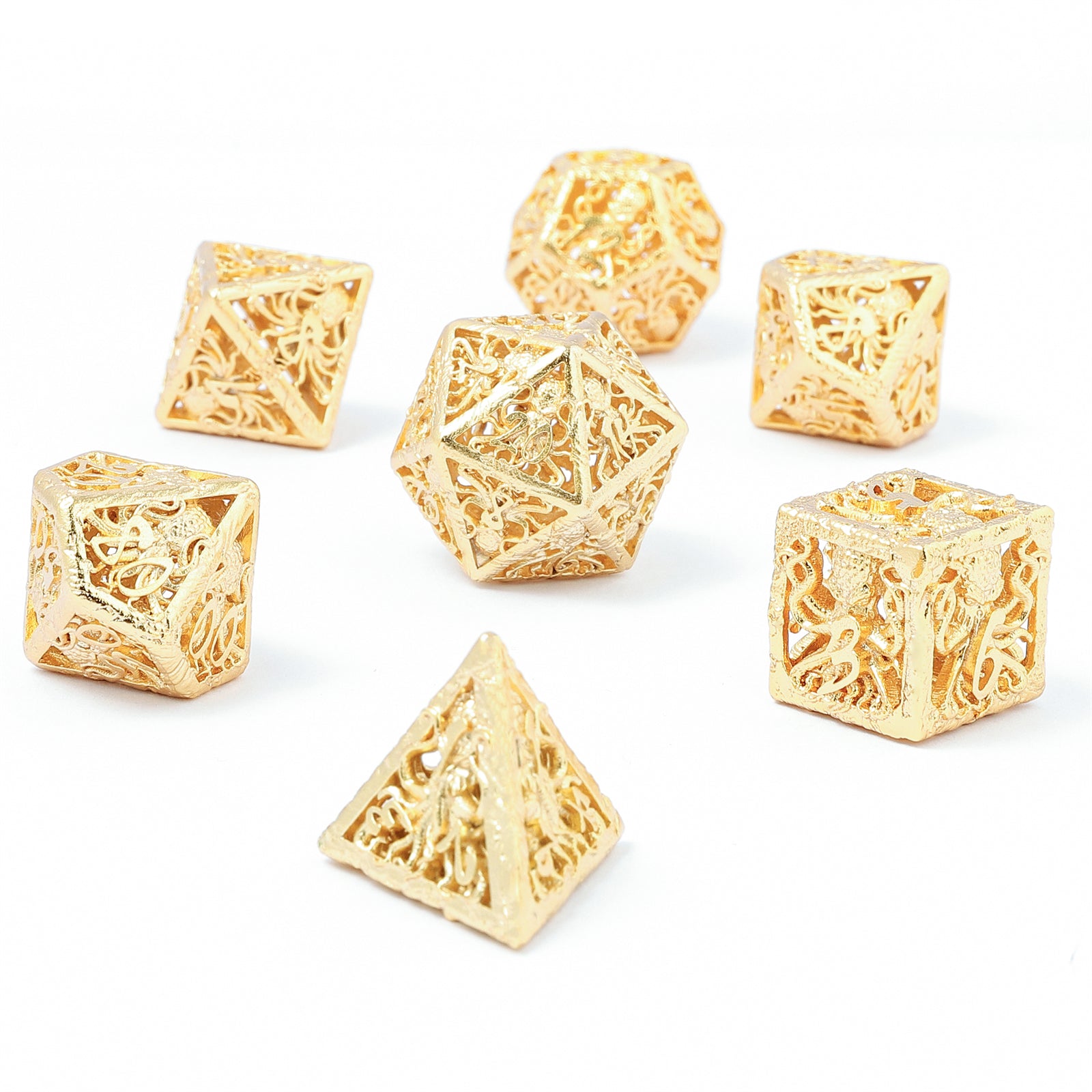 Lllithids Mind Cage Hollow Metal Dice Set - 24K Gold Plated