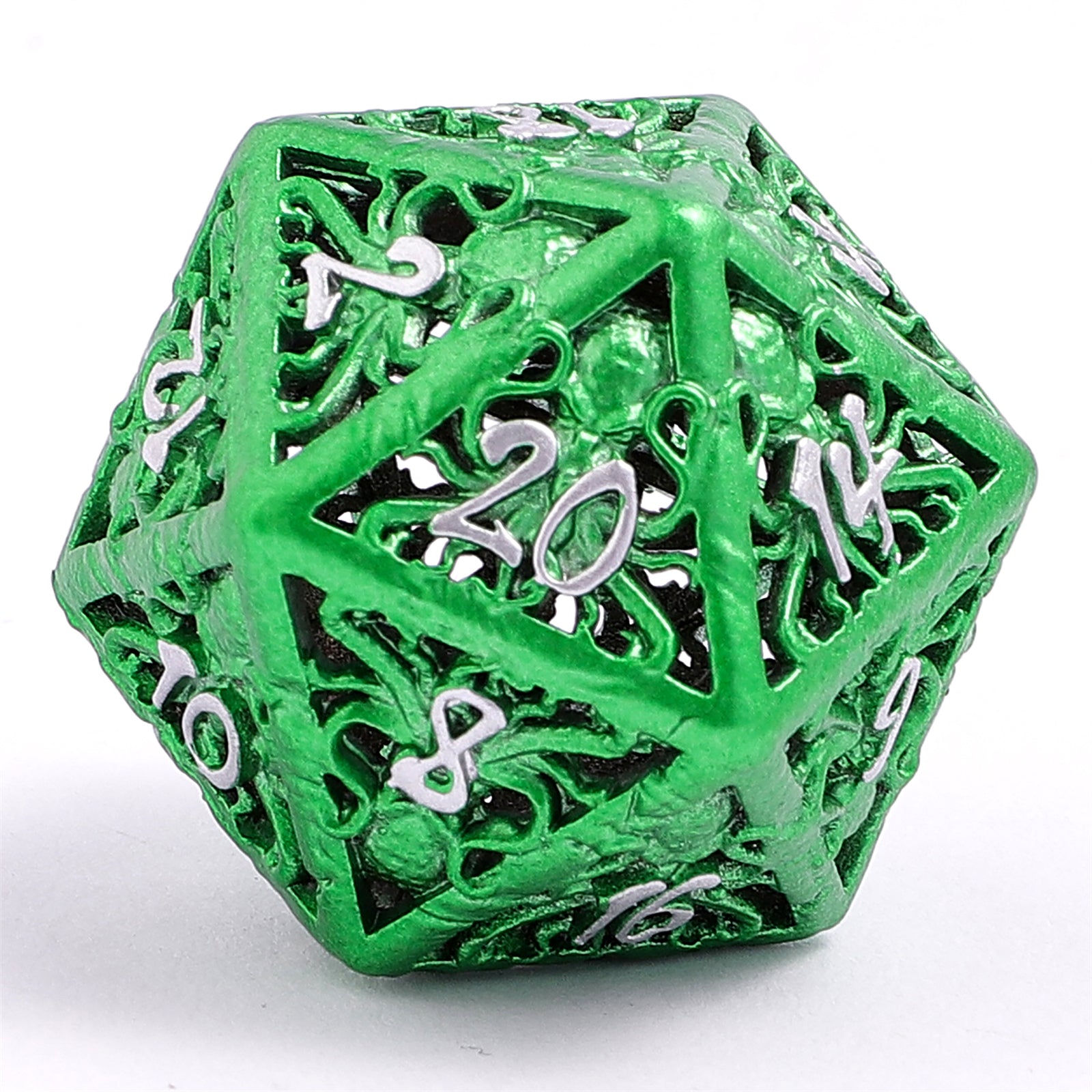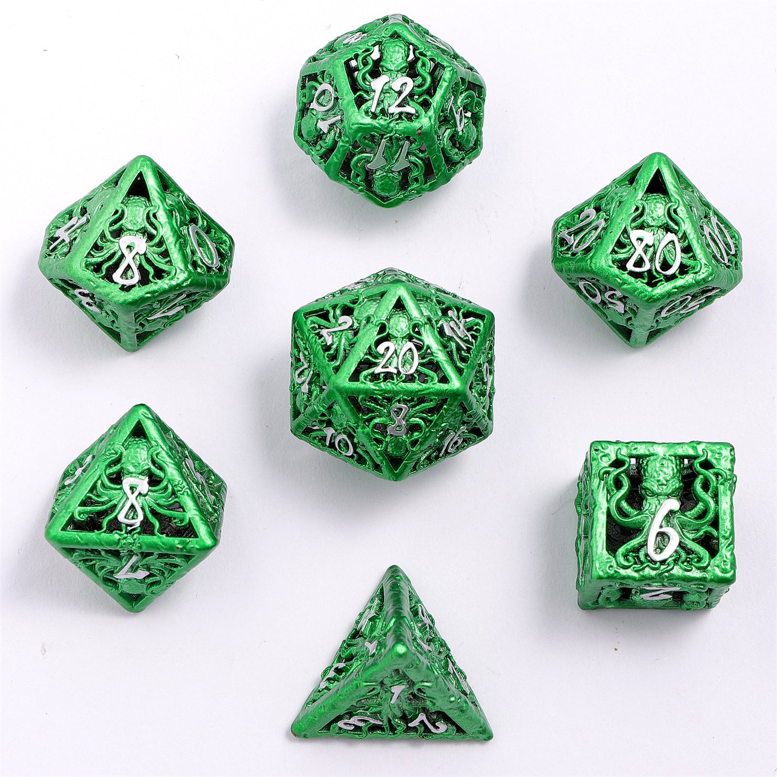 Lllithids Mind Cage Hollow Metal Dice Set - Green w/Silver