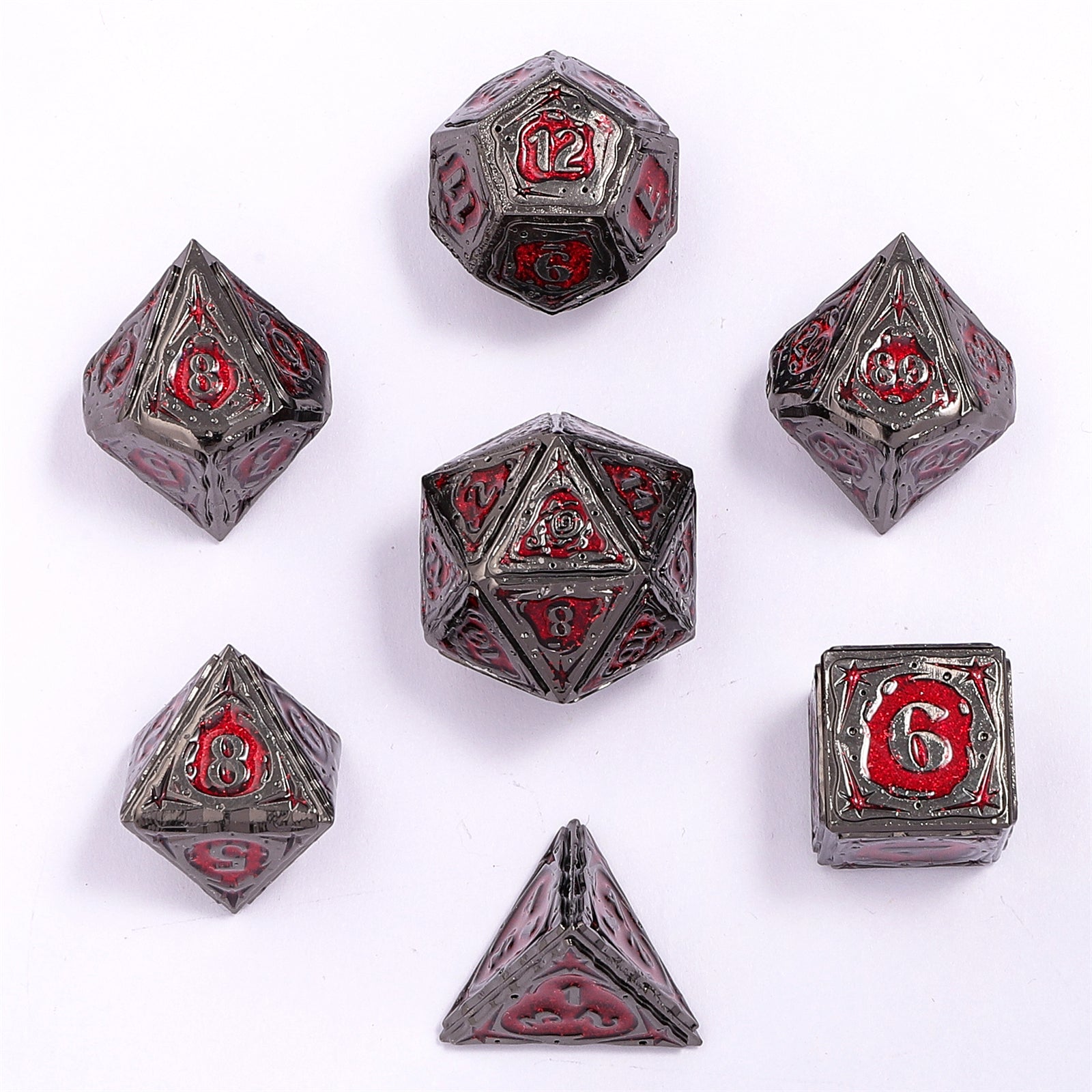 Sorcerer Solid Metal RPG Dice Set - Gunmetal w/Red Glitter